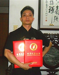 世界上单食指倒立(有支撑)持续时间最长——冯嘉强...